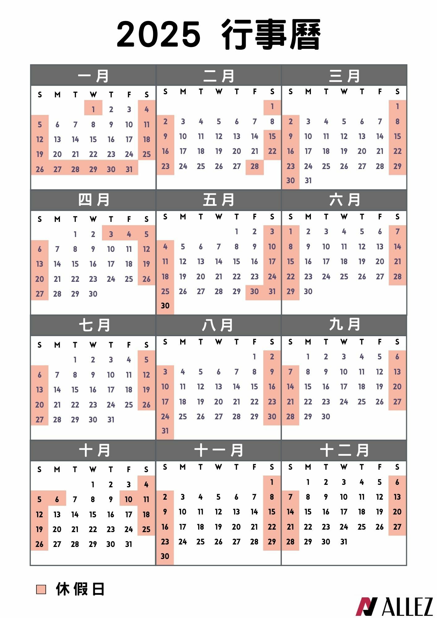 2025連休假日一覽表