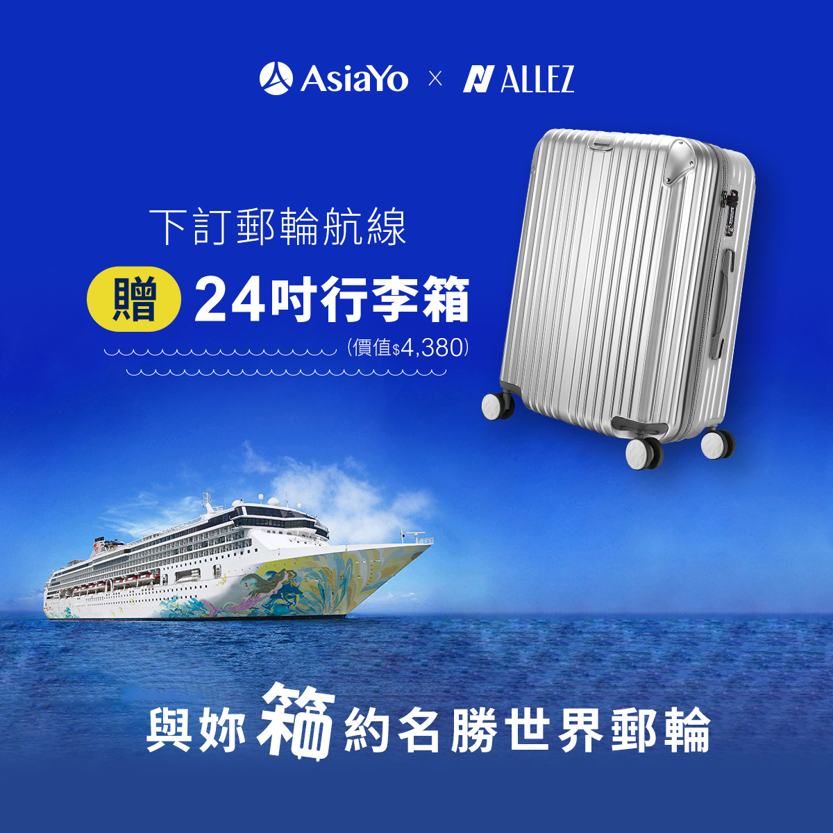 即日起只要預訂 『名勝世界壹號 六天航次』,就送價值$4,380的箱見恨晚24吋行李箱,7/31前預訂每艙再減$5,000!