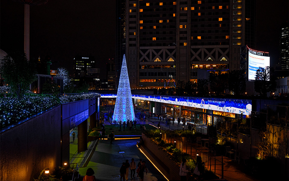 東京巨蛋城今年以「Snow Dome」為燈飾主題,以白雪呈現出冬季的節日氣氛。會場設置高15公尺的巨大 LED 聖誕樹,夜晚欣賞燈光演出十分浪漫。