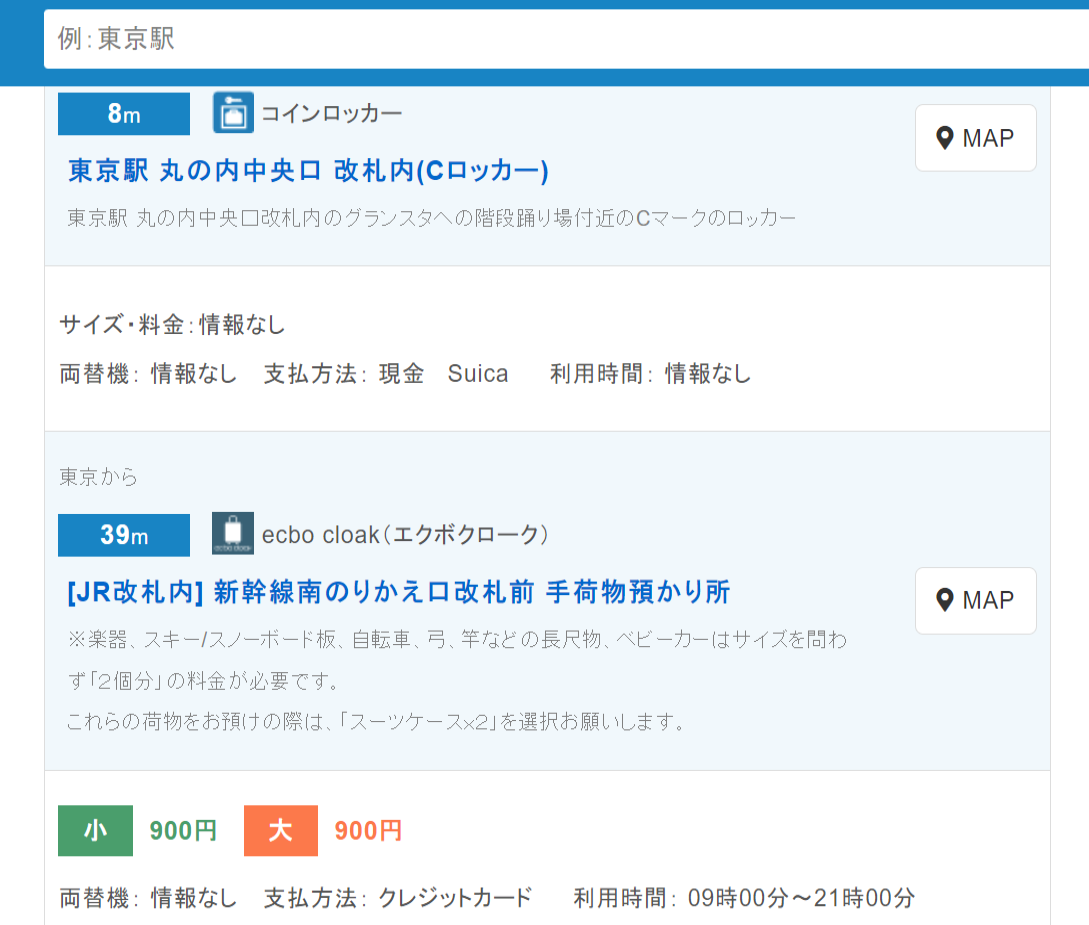 此網站免下載App即可使用,目前跟JR東日本公司合作,提供全日本的置物櫃設施與數量查詢,雖然是日文版但介面不複雜,可直接點選查詢所在地附近的置物櫃,即可進階找到距離自己最近的置物櫃位置及剩餘空位數。
