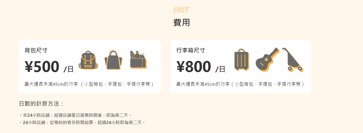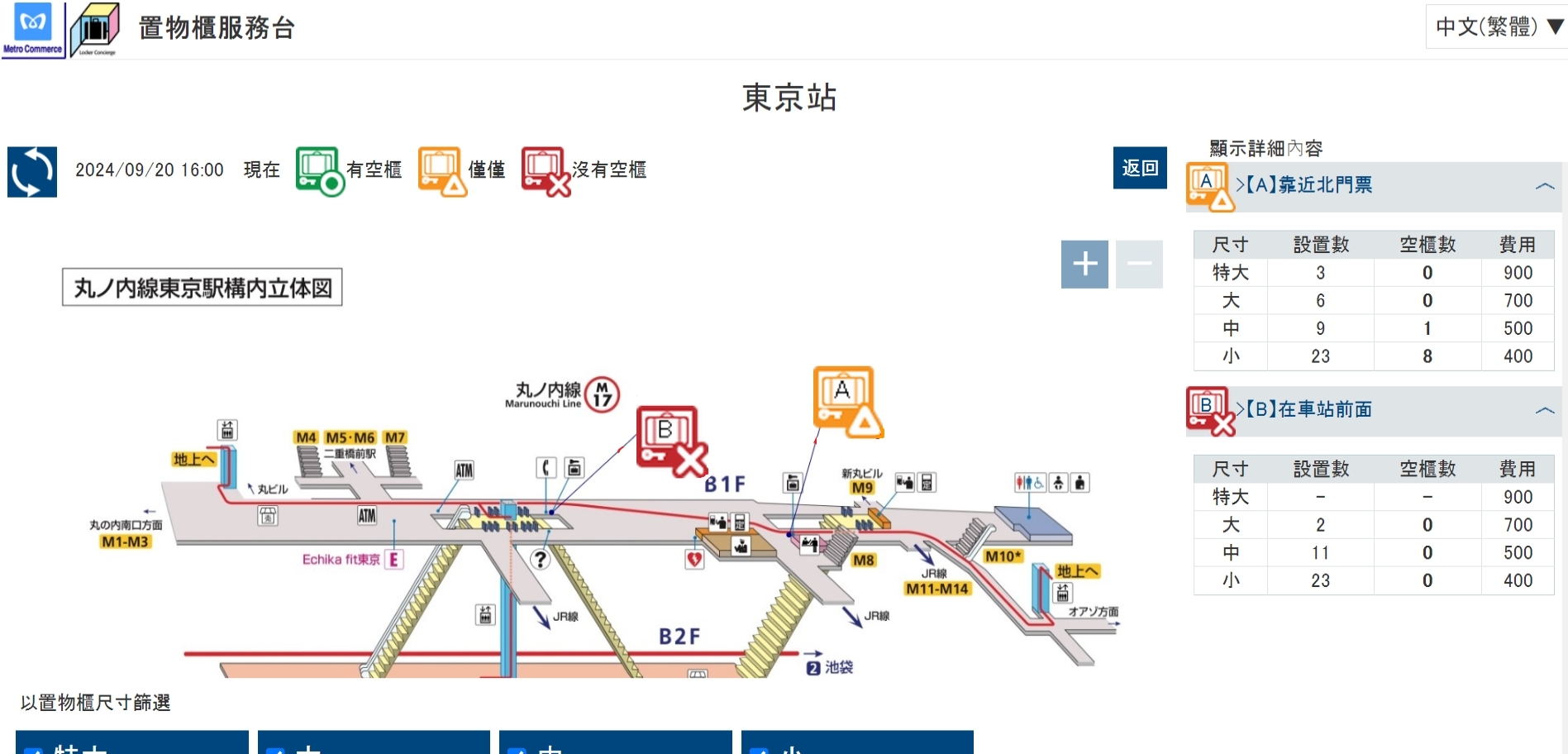 日本置物櫃尺寸與收費(以東京車站為例)
