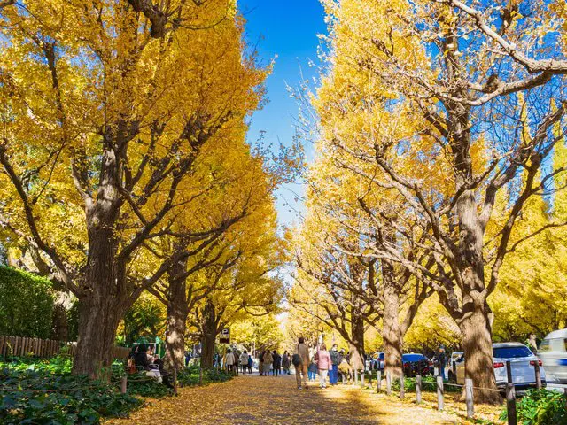 明治神宮外苑距離外苑前站只有幾分鐘的路程,交通十分便利,它位於明治神宮的東方,是日本許多電視廣告、電視劇與電影的取景之地,相信喜歡看日劇的朋友一定對這邊的場景相當熟悉,其中它最為知名的「銀杏大道」由青山街在路旁兩側一路綿延神宮外苑長達300公尺,場面相當壯觀。