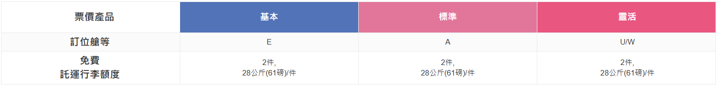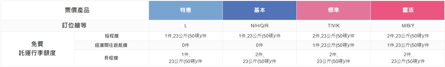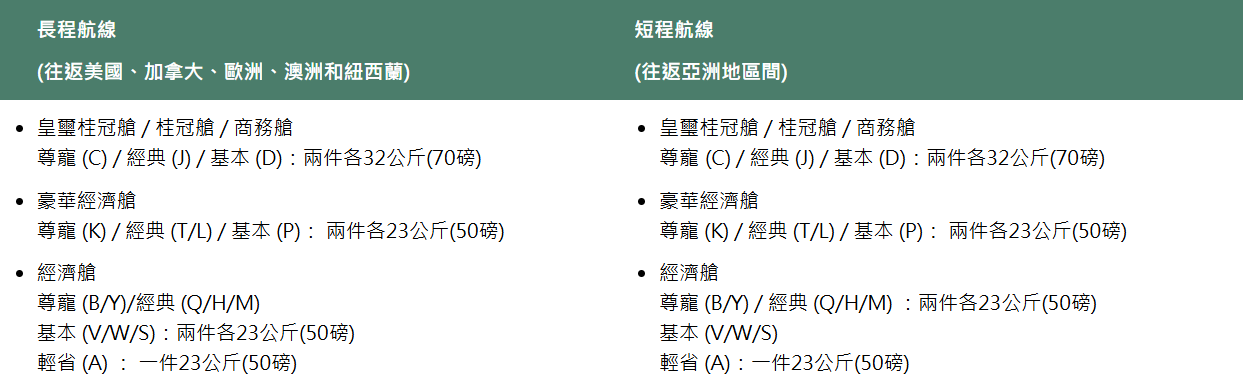 長/短程航線:超值/基本/全額 - 2件/每件23公斤(50磅)