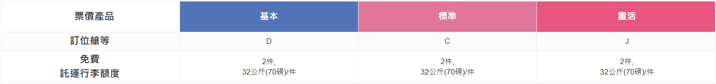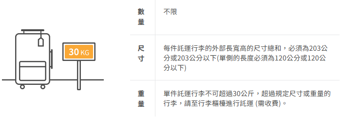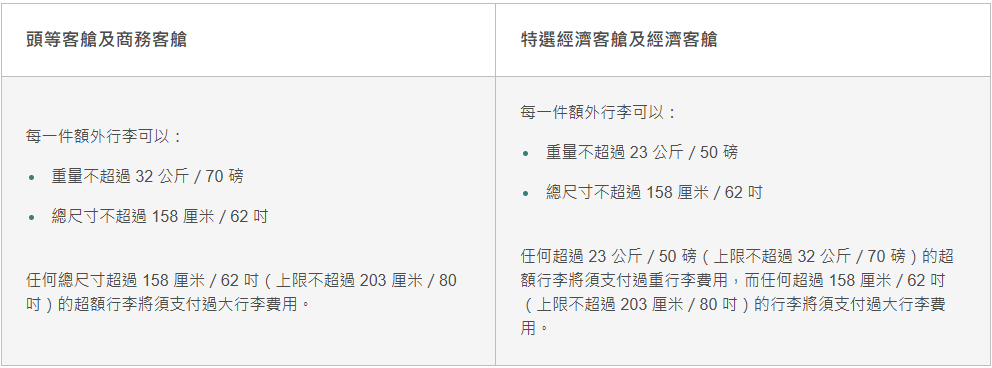 長/短程航線:超值/基本/全額 - 2件/每件32公斤(70磅)