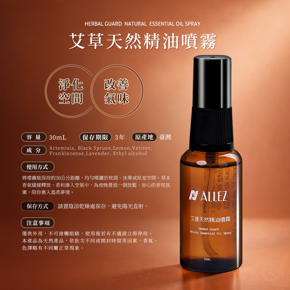 • 主要成分: 艾草、黑雲杉、檸檬、索馬利亞乳香、真正薰衣草、岩蘭草