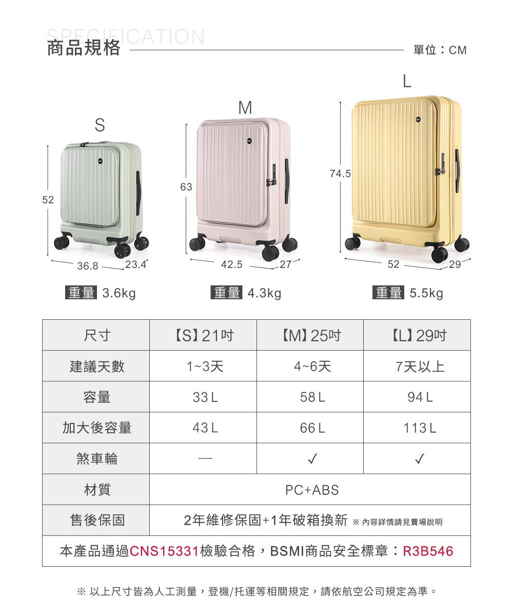 ✔9:1 前開式箱體,開蓋更便利,快速拿取行李