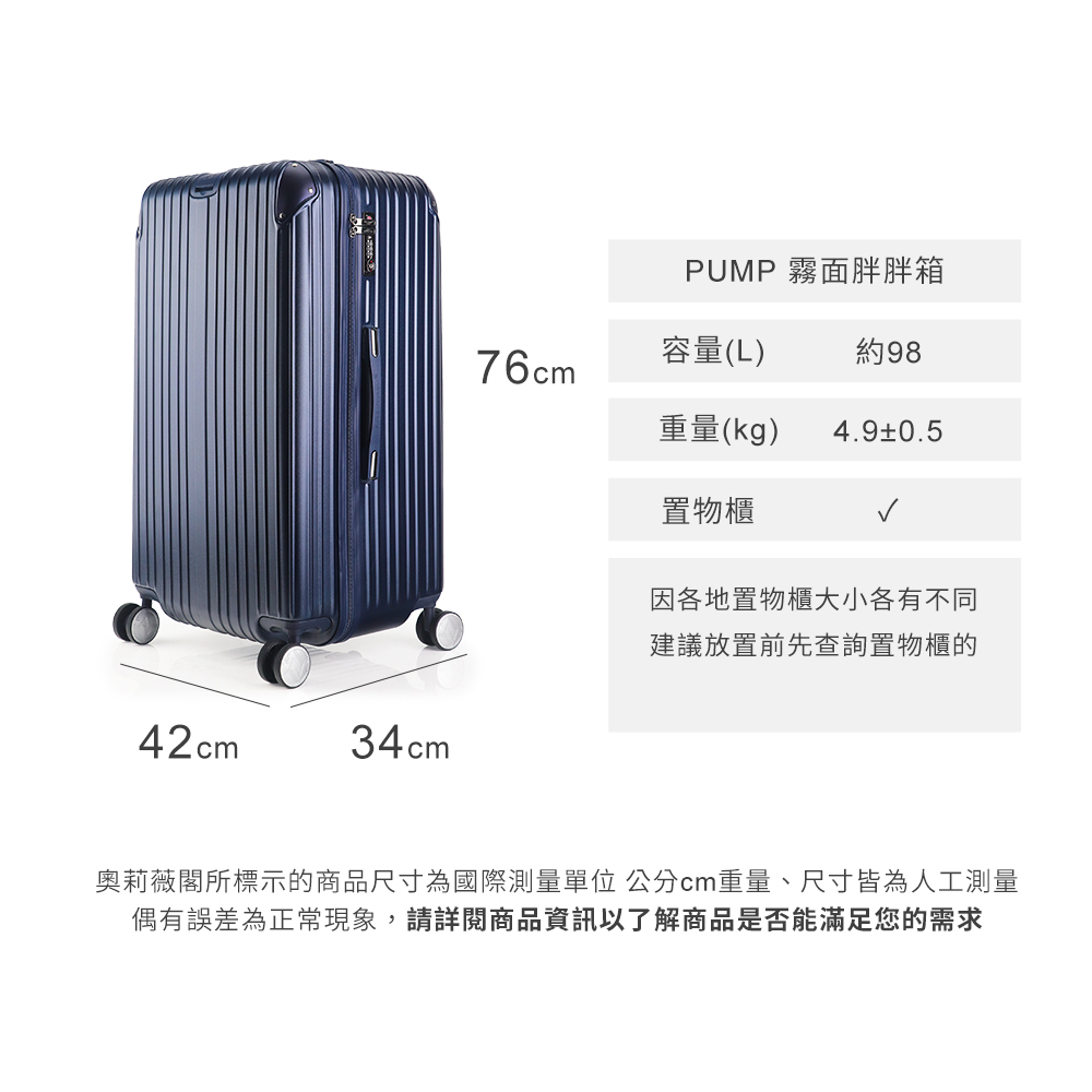 外框:約 76×42×34 ±2 (cm) (含輪子、把手、拉桿等五金配件)