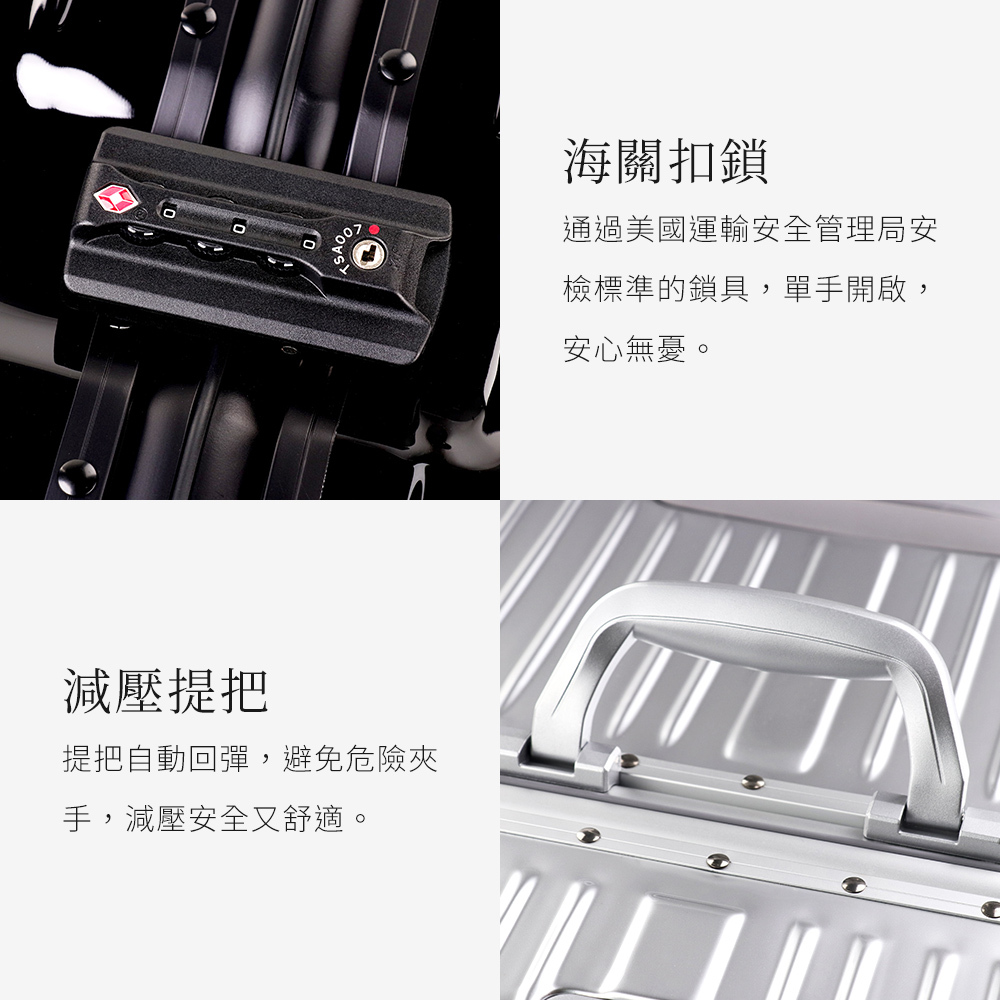 •內嵌式海關鎖,金屬材質堅固耐用