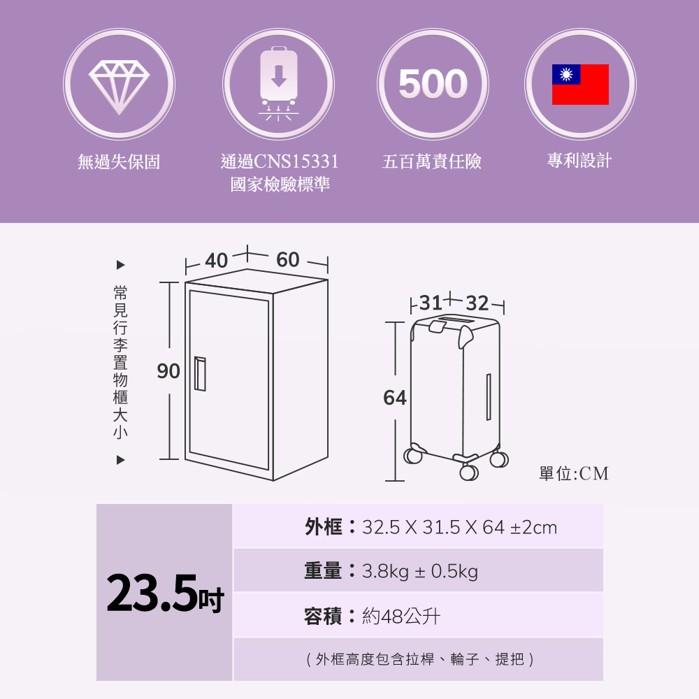 •專利輔助輪,預防箱體與地面直接摩擦