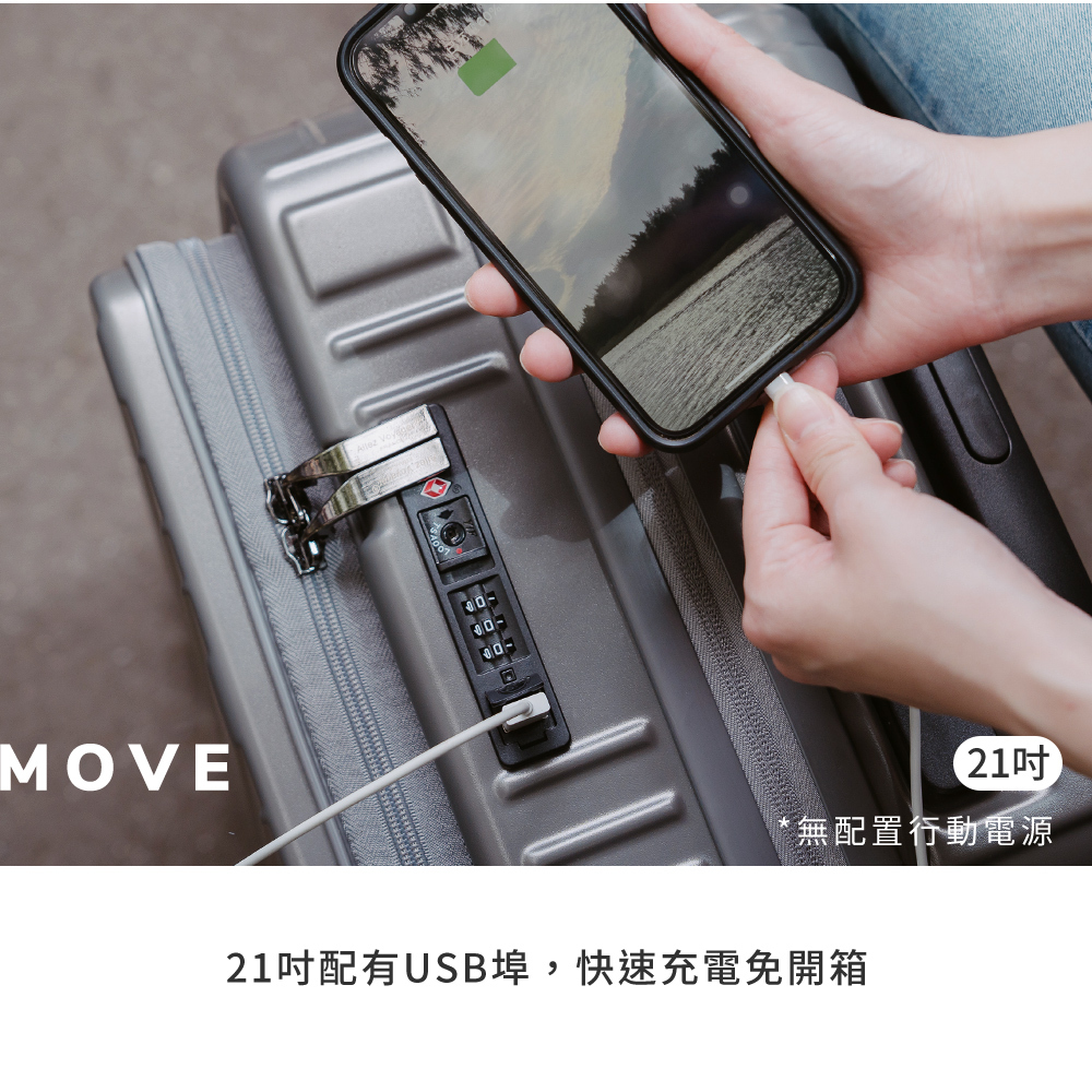 ✔21吋限定,可充電USB連接阜,為你的旅程即時充電