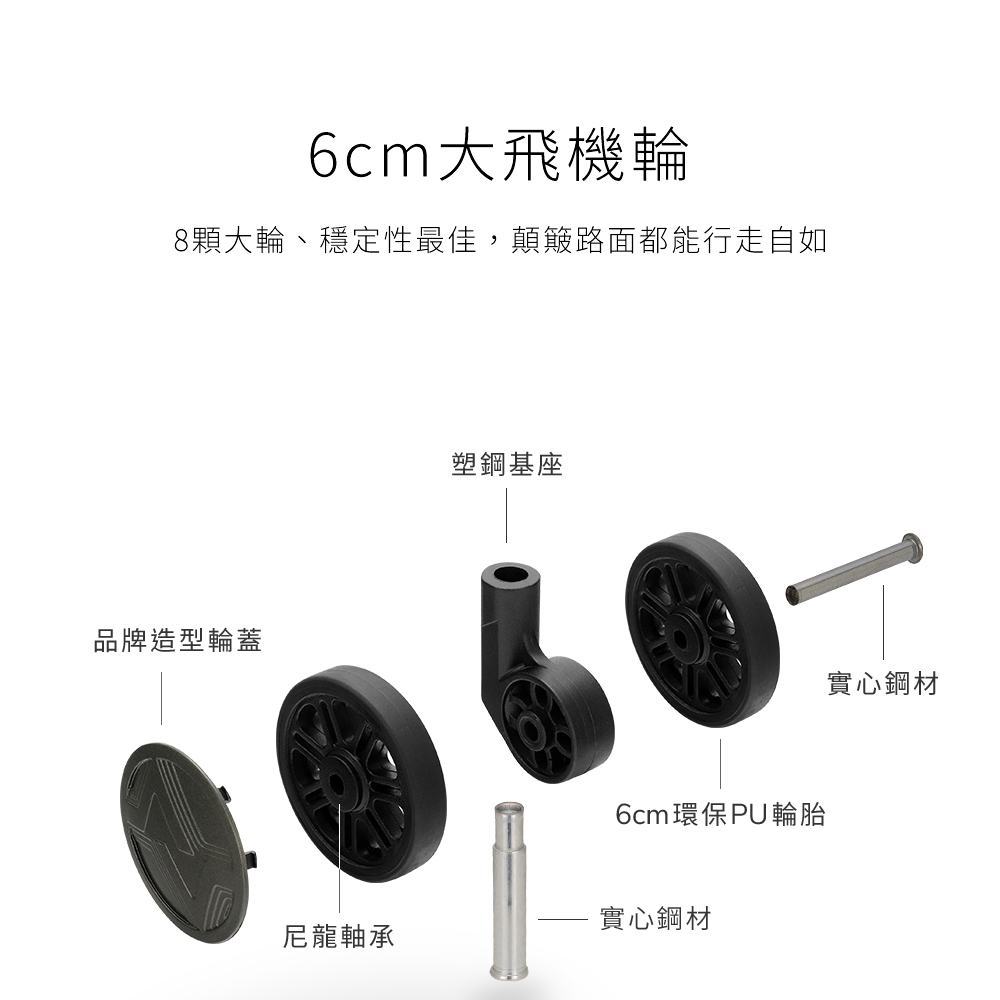 ✔6公分大靜音飛機雙輪,滑順推行不費力